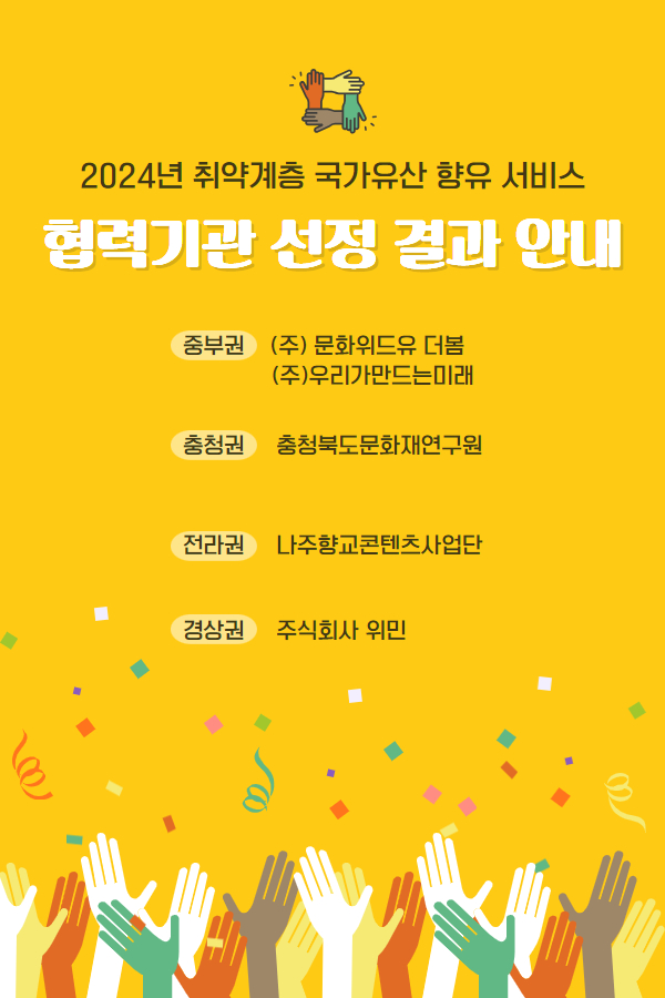 ¡¸2024³â Ãë¾à°èÃþ ±¹°¡À¯»ê ÇâÀ¯ ¼­ºñ½º Çù·Â±â°ü¡¹ ¼±Á¤ °á°ú¸¦ ´ÙÀ½°ú °°ÀÌ ¾Ë·Áµå¸³´Ï´Ù.